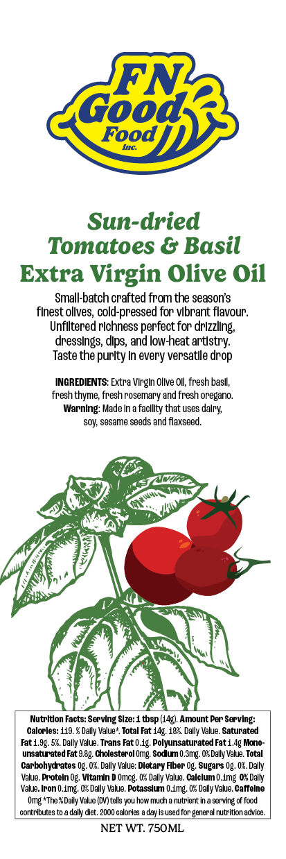 A sun-kissed, cold-infused extra virgin olive oil blending the rich umami of ripe tomatoes and the sweet aroma of fresh basil. Perfect for drizzling over bruschetta, caprese salads, or grilled meats to add a vibrant, Mediterranean freshness. Captures the essence of garden flavours in a versatile finishing oil.