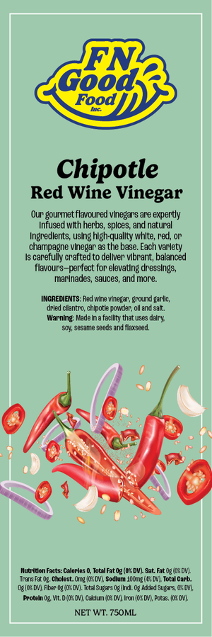 Chipotle Red Wine Vinegar: A smoky, spicy vinegar infused with dried chipotle peppers. Adds deep, fiery warmth to BBQ sauces and meats.