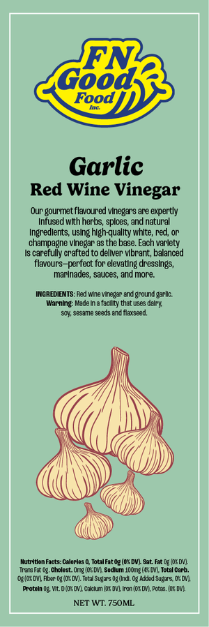Garlic Red Wine Vinegar: A pungent, savoury vinegar steeped with robust garlic. Ideal for marinades, dressings, and sauces.