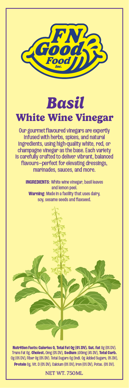 Basil White Wine Vinegar: A light, crisp vinegar infused with sweet basil. Perfect for delicate vinaigrettes and summer salads.