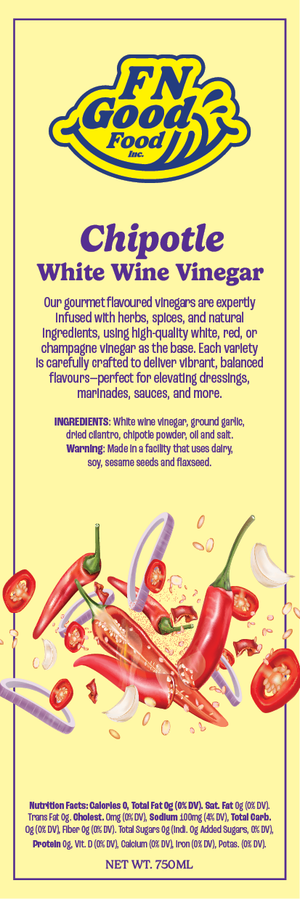 Chipotle White Wine Vinegar: A smoky, mild vinegar with chipotle warmth. Adds depth to sauces and glazes.