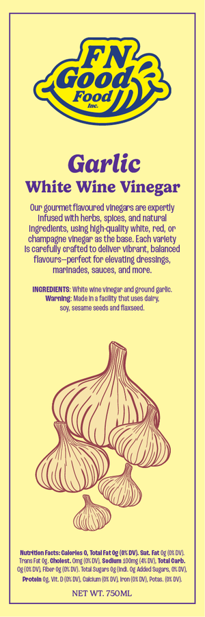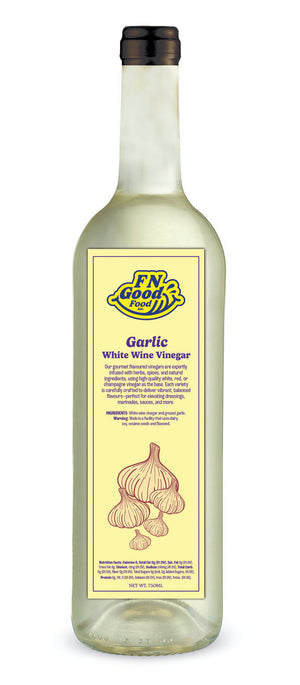 Garlic White Wine Vinegar: A sharp, clean vinegar with pungent garlic. Versatile for marinades and dressings.
