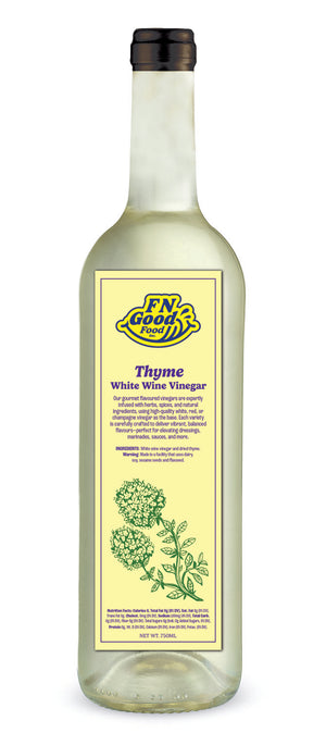 Thyme White Wine Vinegar: An earthy vinegar with thyme’s floral touch. Enhances beans and poultry.