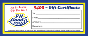 Simplify gift-giving and inspire culinary adventures with the versatile Gourmet Gift Card Collection. From cooking essentials to artisanal delights, give the gift of choice and let your loved ones curate their own gastronomic experience. Unwrap the joy of giving and share the love of exceptional food with our thoughtfully crafted Gift Cards – because the F N Good memories are created around the table.